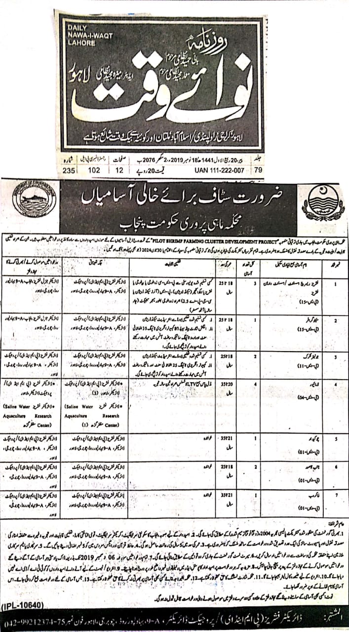 Career Opportunities under development project "Pilot Shrimp Farming Cluster Development Project" for detail ....